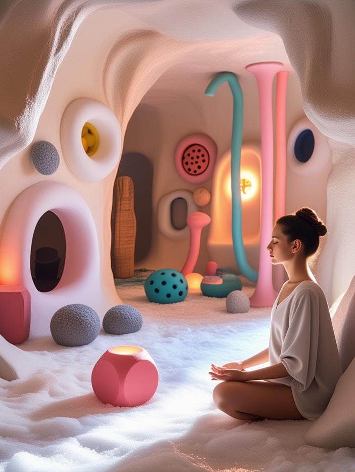 盐洞通常采用喜马拉雅盐等天然盐材建造,墙壁和地面由盐砖或盐晶体铺设而成。洞穴内光线柔和,营造出宁静、舒适的氛围,让人能放松地进行禅修。