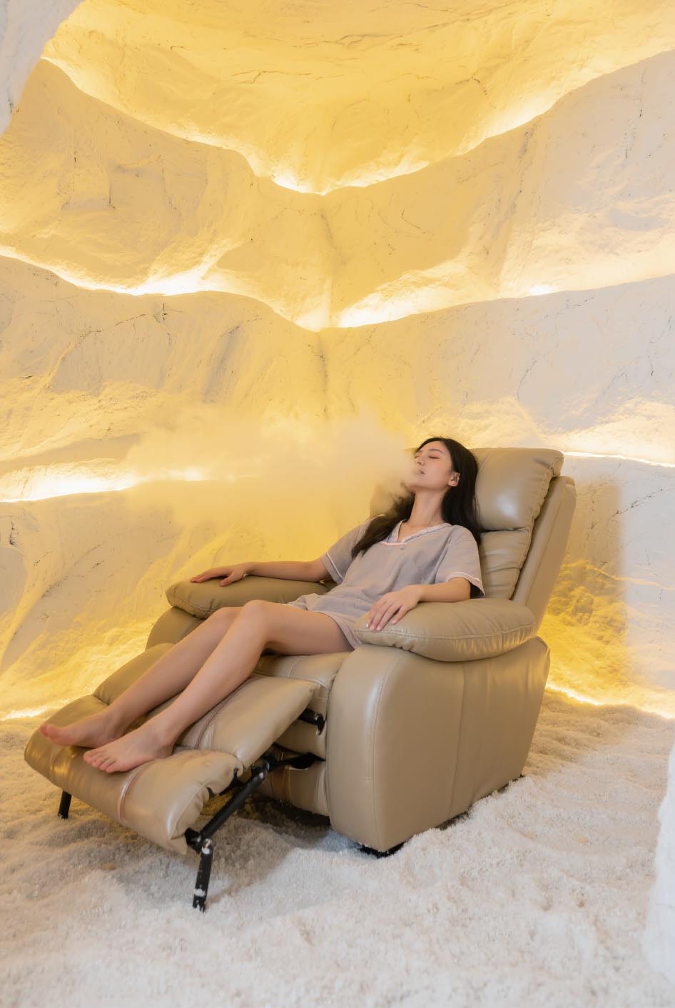 “微疗愈” 式午休:无需躺平,只需在盐洞的休闲区(配备低矮沙发、盐石靠枕)坐 15-20 分钟,就能感受到明显放松 —— 盐雾缓解呼吸道压力,暖光减少视觉刺激,员工反馈 “相当于在传统办公室睡 30 分钟的效果”,下午工作不易犯困。
