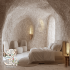 真洞穴盐疗屋入口进入生活区,仿佛穿过奇幻的 虫洞回归到了现实的世界。仿真洞穴盐疗屋的定制的整面电视墙拥有非常丰富的储物空间,可旋转的电视架方便全家人在多角度欣赏。